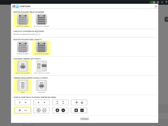 Inoltre è stata aggiunta la possibilità di scegliere l'icona per l'apertura e la chiusura dei sotto-pulsanti.
